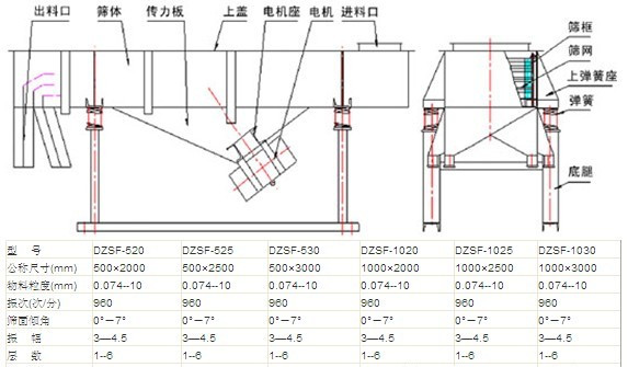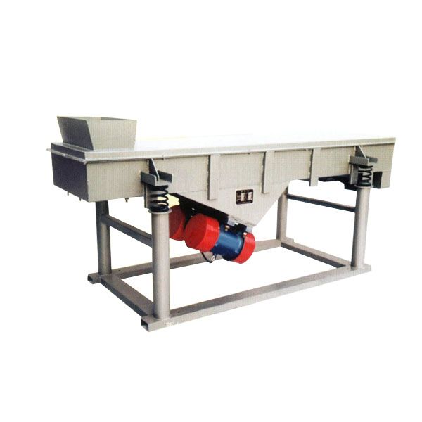 當縱向安裝在篩體上的兩臺振動電機兩端的偏心塊便產生額定激振力,其產生在橫向的激振力相互抵銷,其縱向的激振力通過傳振體傳遞到整個篩面上,從而使篩面上的物料受其激振力而在篩網面上向出料口方向跳躍運動。小于篩孔的物料通過篩孔落到下層,大于篩孔的物料經連續(xù)跳躍后,經出料口流出,由于篩分過程合理,可將物料經振動篩分級后,取得幾種不同顆粒的物料,完成物料的分級。